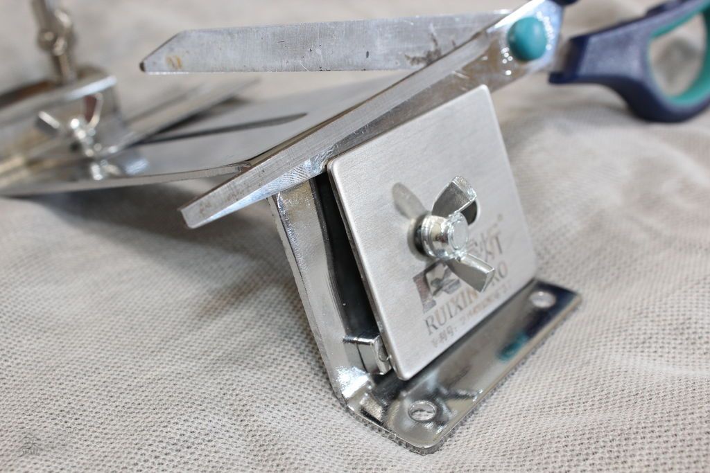 睿炘定角磨刀器是很容易使用的工具,熟悉之後,鈍刀都可以磨得鋒利。雖然這款是全金屬版,但材質似乎不是不銹鋼,使用後要擦乾晾乾水滴,最好是翻倒 90 度側放,比較不會積水。