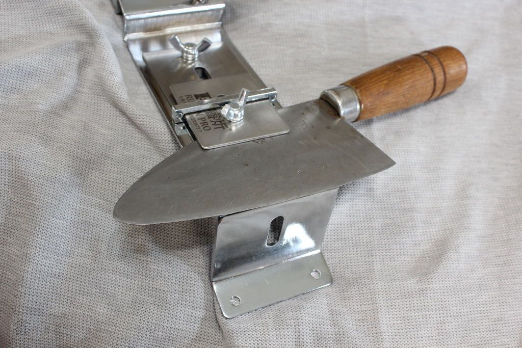 調整好位置,放入刀子,再轉動蝴蝶螺絲壓住夾緊。