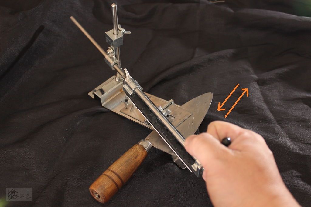 操作磨刀棒,讓它以最大活動行程來回抽拉,幾下之後再慢慢往左或往右移動。
