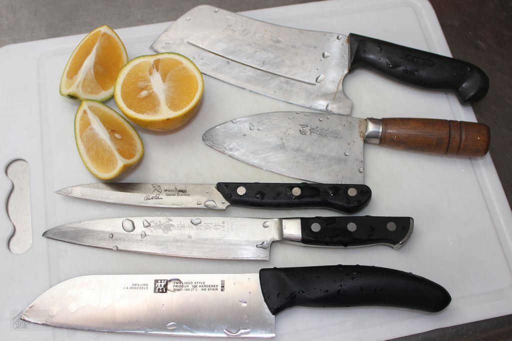 廚房並不缺磨刀石與磨刀棒,家常切菜片肉用途絕對夠了。重新認識之後,才知道家裡磨刀石其實非常粗,讓刀變比較利仍可行,但怎麼磨都很難達到「下刀輕鬆滑順」的優秀手感。真正手工磨刀技法是用 3 到 4 顆不同粗細的磨刀石,從小號數 (#300) 到高號數 (#2000),一個階段一個階段慢慢磨。