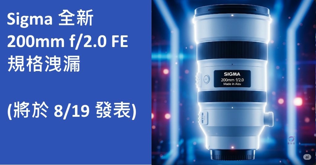 【最新消息】SIGMA 將於 8 月 19 日發表全新 200mm f/2.0 FE 鏡頭!規格搶先看