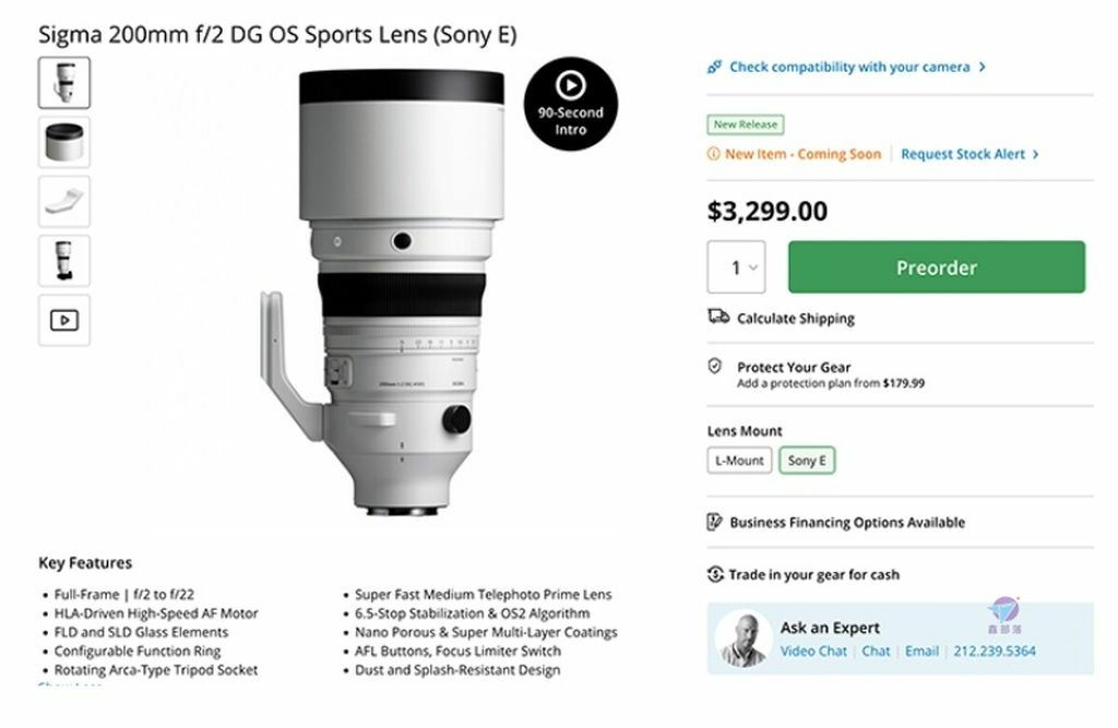 預估售價:新的 200mm F2 將屬於 SPORTS 系列,因此價格不會特別昂貴。約 2500 美元