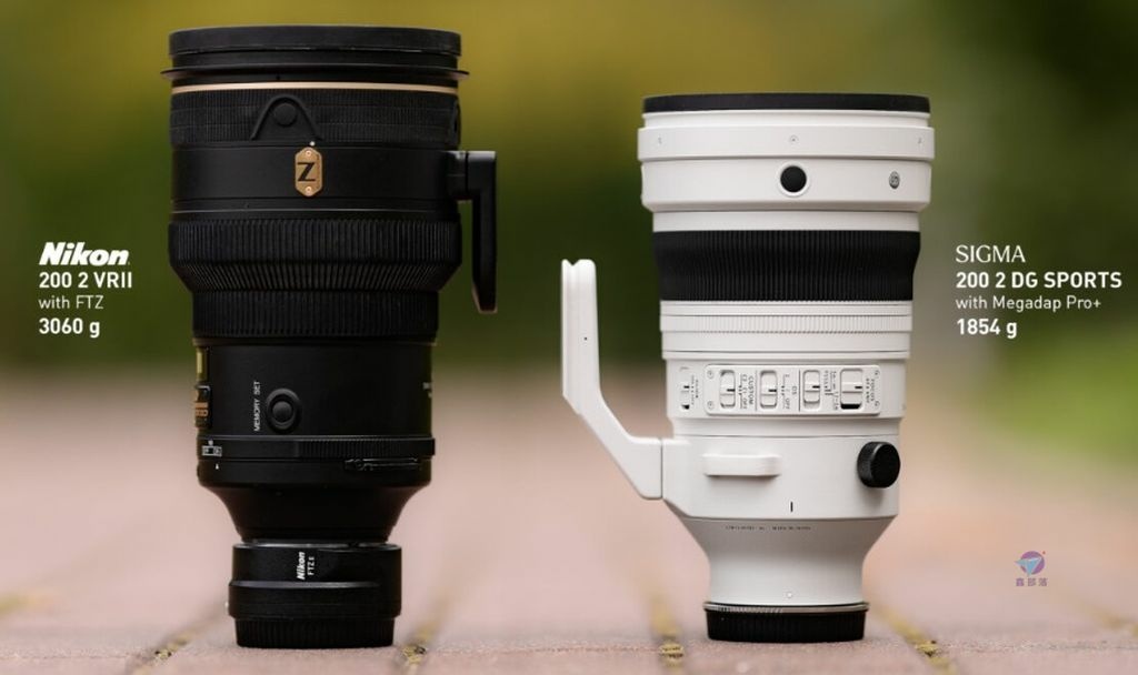 SIGMA 200mm f/2.0 FE 預計重量略低於 2000 克,相較於過去兩大單眼系統鏡頭,顯示出顯著的輕量化成果:
