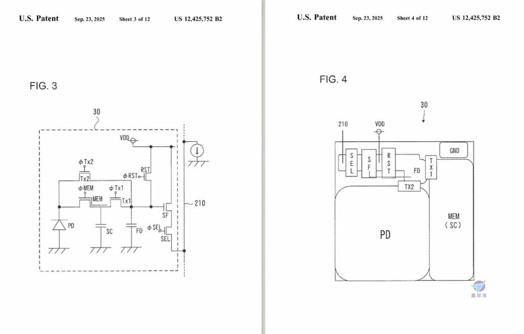 專利描述了側置儲存電容作為溢位槽的機制:當像素接近飽和時,多餘電荷可流入側置槽,避免立即截斷高光,理論上能延長感測器的緩衝空間,對 HDR 使用場合有幫助。
