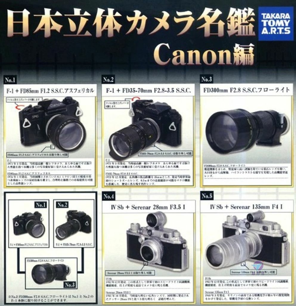以下是之前 Takara Tomy A.R.T.S 出品的日本立體相機名鑑 - CANON 編。一套五款,絕版已久。